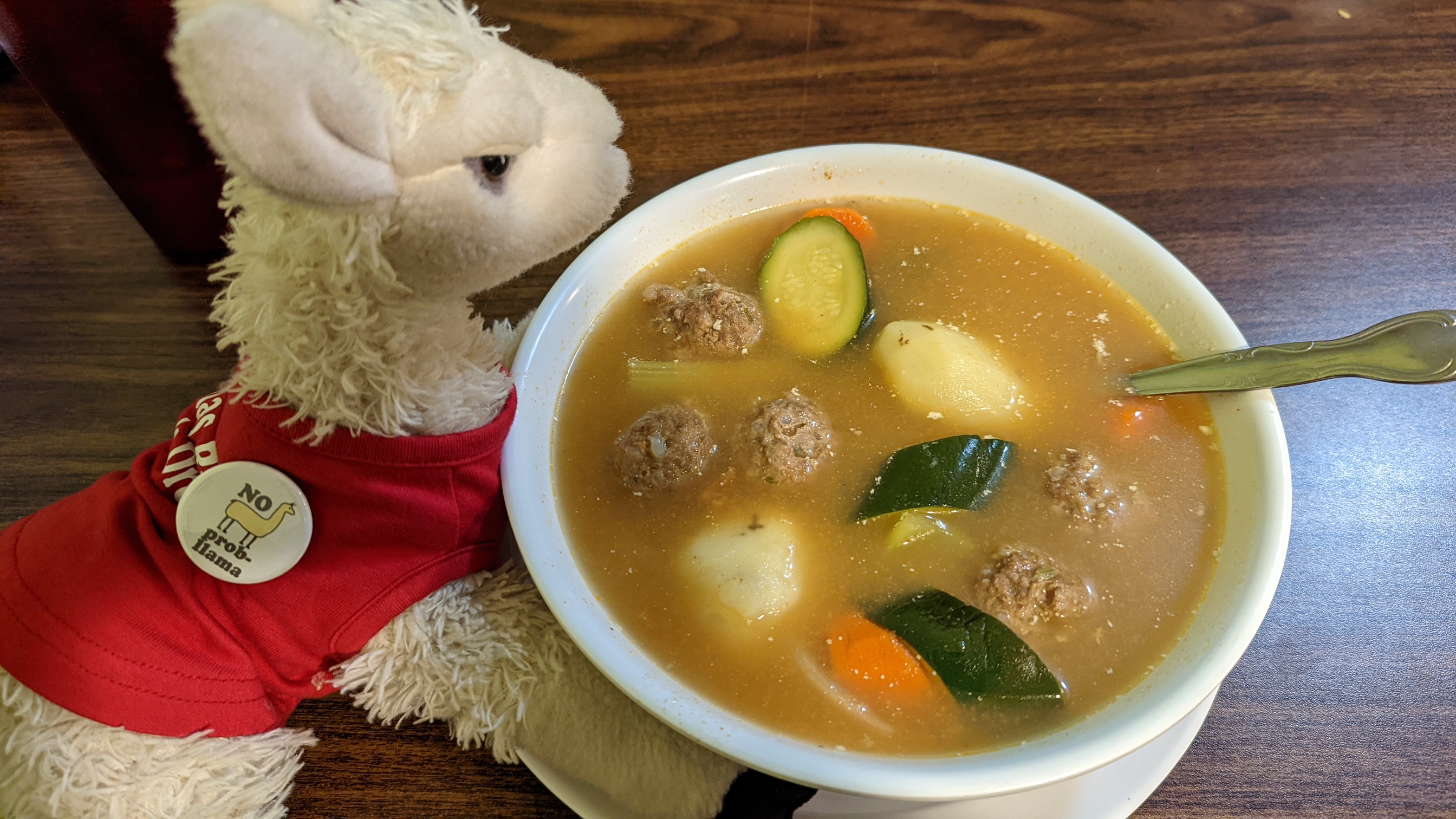Karol and Llama tried the Albondigas or “meatball soup”. This was a warm and flavorful choice.