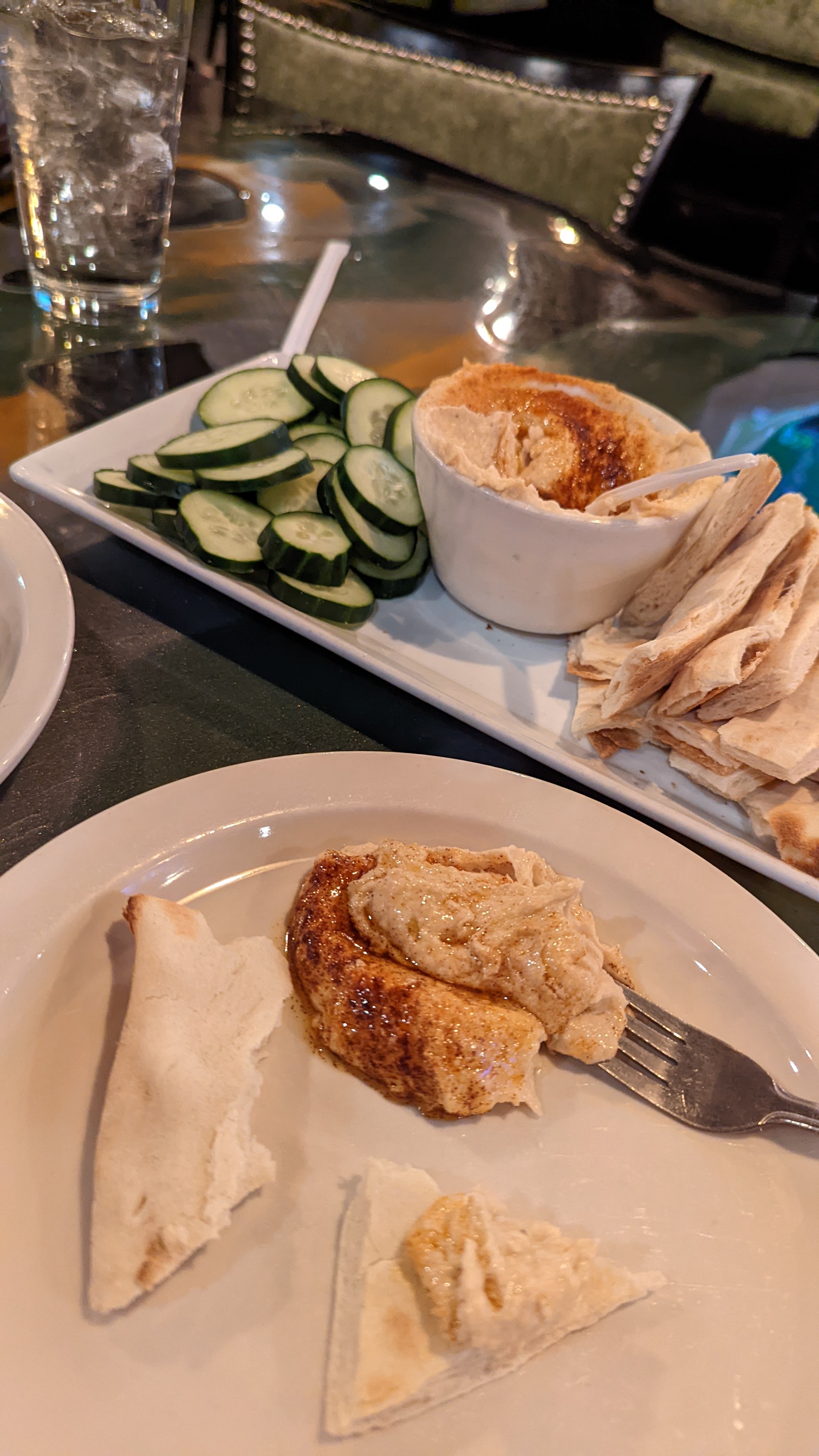 Well, good thing we had runner up options. Michael and Karol split hummus and garlic naan (not pictured) while waiting on their main course. They probably could have just had that and been happy. So flavorful. The texture of the hummus was perfect.